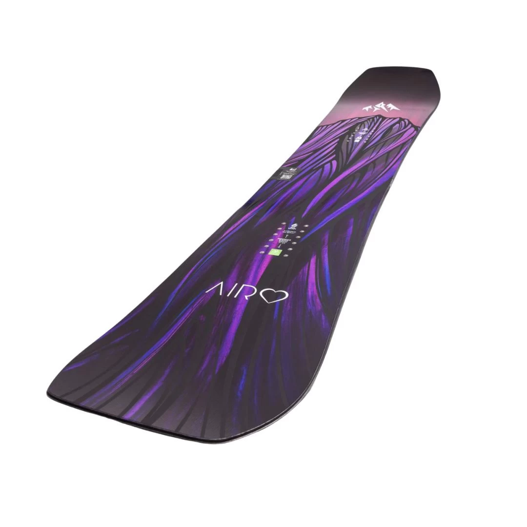 The Airheart is one-of-a-kind in the Jones women’s line thanks to its TRUE CAMBER profile. Tip-to-tail camber matched with a directional twin shape delivers phenomenal power and stability edging on steeps and stomping tricks.