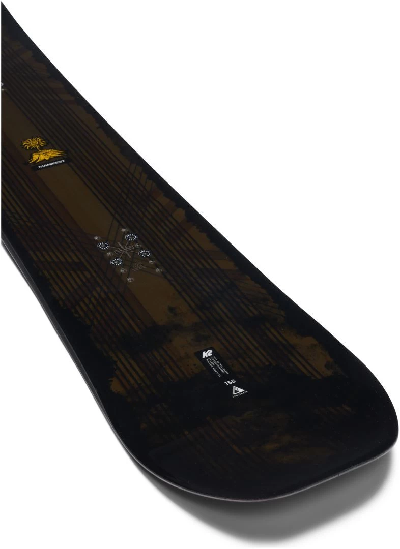 De K2 Manifest is een veelzijdige snelheidsmachine met een middelhoge tot stijve flex die bestand is tegen de klappen die gepaard gaan met snowboarden in de bergen. De Manifest heeft een directionele tweelingvorm en een Combinatie Camber-profiel, waardoor het een consistent en voorspelbaar gevoel geeft tijdens het rijden, switch of regelmatig en voegt een beetje rocker toe aan de neus en staart van het bord voor een zwevend en een catch-free gevoel.